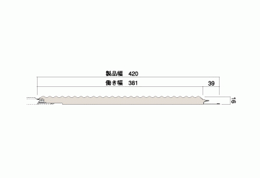 | 塗装溶融55%アルミニウム-亜鉛合金めっき鋼板[0.27mm] | 硬質プラスチックフォーム(ウレタン)[16mm] | 3048mm(10尺) | 381mm(8枚で10尺) | 8枚 | 9.29m²(2.82坪) | 35.3kg |